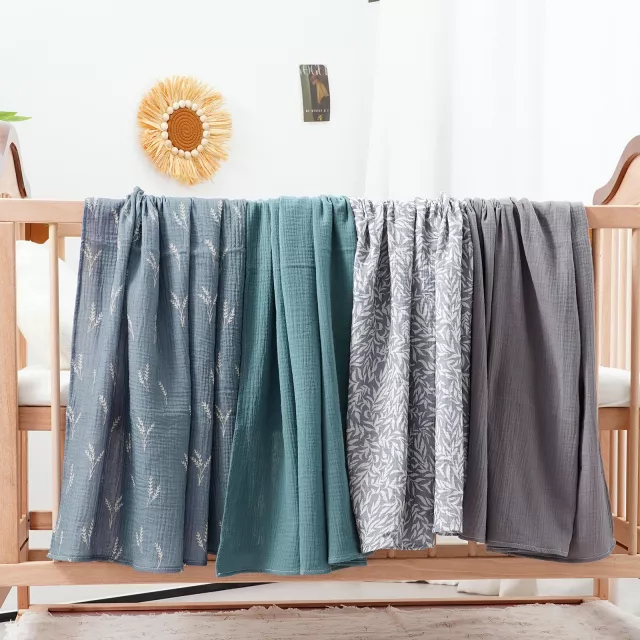 Wrap your little one in gentle, all-season comfort with this 4-piece set of 100 percent crepe cotton muslin swaddle blankets. Designed to be incredibly soft, lightweight, and breathable, these essentials keep your baby cozy without overheating. Each blanket measures approximately 40 x 40 in, offering generous coverage for swaddling, cuddling, nursing, or providing shade on stroller walks.