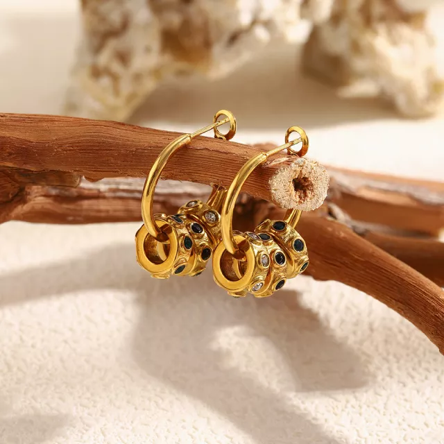 These hoops bring together durability, comfort, and style. The waterproof and hypoallergenic construction ensures they remain gentle on sensitive skin and suitable for any activity. The round silhouette, paired with colorful zircon accents, creates a sophisticated yet playful design that transitions seamlessly from office hours to evening outings. Whether you want to brighten your workday look or polish your weekend style, these earrings add the perfect finishing touch.